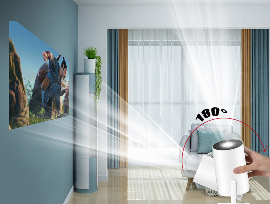 🌟 Diseño giratorio de 180° – Proyecta desde el suelo hasta el techo